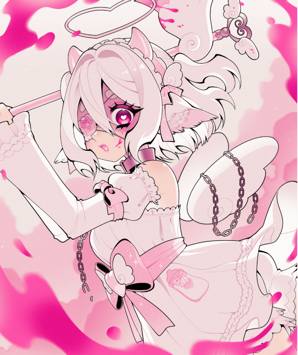 In Heartglow Haven's most tender recesses, a tiny wish was conceived-a wish for love, comfort, and warmth. The wish materialized in the form of Dolli, an angel-winged shapeshifter with a heart-shaped halo. She was crafted by the stars to be a comfort guardian, who came down to Earth to mend hearts and bring smiles to the lost and lonely.Dolli is clumsy, soft-spoken, and gentle. She trips over her own feet, so her bows come loose or her wings flap wildly. That's why she's always bandaided, something that isn't just cosmetic. They're magical, absorbing sadness and repairing hearts.But what is special about Dolli is that she adores all things soft, cuddly and baby-like. She carries with her little baby bottles, pacifiers, soft toys and other things to comfort people in need. She is there to make everyone feel safe and loved.Despite being supposed to return to Heartglow Haven, Dolli chose to remain on Earth and offer comfort in her own adorable way.As she got used to her new home, she's been learning all sorts of new things. She's also become enamored with the adorable animals she's met—such as cute kittens and fluffy dogs. With her magic skills and wand, she even transformed herself into some of her favorites to show her appreciation towards them. Those being a lamb, kitty cat and puppy!Whether with a magical bandaid, a soft cuddle plush, or a gentle coo of comfort, she is here to hug the world with love-one small comfort at a time.