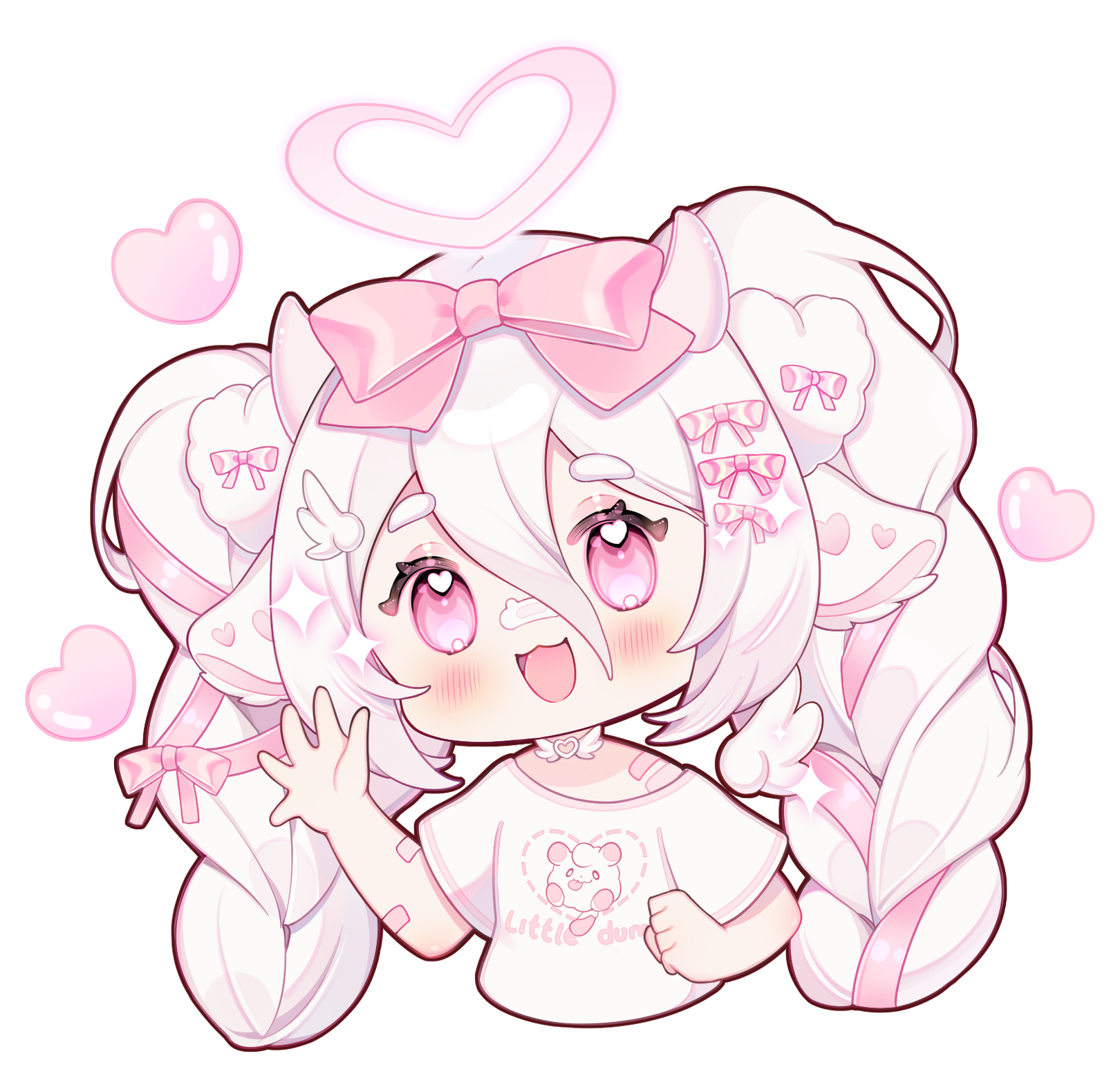 In Heartglow Haven's most tender recesses, a tiny wish was conceived-a wish for love, comfort, and warmth. The wish materialized in the form of Dolli, an angel-winged shapeshifter with a heart-shaped halo. She was crafted by the stars to be a comfort guardian, who came down to Earth to mend hearts and bring smiles to the lost and lonely.Dolli is clumsy, soft-spoken, and gentle. She trips over her own feet, so her bows come loose or her wings flap wildly. That's why she's always bandaided, something that isn't just cosmetic. They're magical, absorbing sadness and repairing hearts.But what is special about Dolli is that she adores all things soft, cuddly and baby-like. She carries with her little baby bottles, pacifiers, soft toys and other things to comfort people in need. She is there to make everyone feel safe and loved.Despite being supposed to return to Heartglow Haven, Dolli chose to remain on Earth and offer comfort in her own adorable way.As she got used to her new home, she's been learning all sorts of new things. She's also become enamored with the adorable animals she's met—such as cute kittens and fluffy dogs. With her magic skills and wand, she even transformed herself into some of her favorites to show her appreciation towards them. Those being a lamb, kitty cat and puppy!Whether with a magical bandaid, a soft cuddle plush, or a gentle coo of comfort, she is here to hug the world with love-one small comfort at a time.